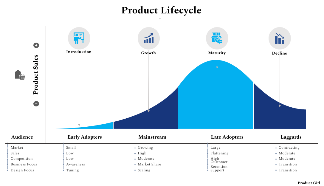Once you know the basics of the product management process it's important to understand the lifecycle of the feature or new product that has been introduced to the market. The product lifecycle will describe the journey of a new product from it's initial introduction into the market until it is discontinued.
