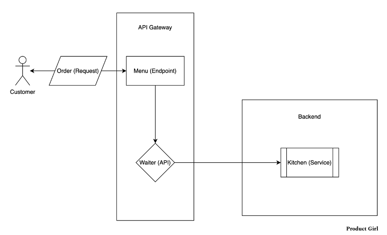 An example of this would be when a customer places an order at a restaurant. The waiter is the API and the menu items are the different endpoints (we'll get there 😘). When the customer places an order from the menu then the waiter will take the order back to the kitchen (service) so that the customer can receive the food they ordered.