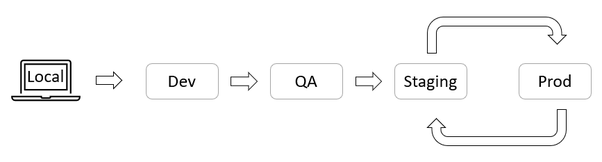 During Software Development, software goes through many stages before it can be deployed into the world. Developers code in different environments to make sure the code is properly tested so when a user receives a new feature and/or functionality it is without bugs. Thus, going through these stages ensures the quality of software being delivered to users.
